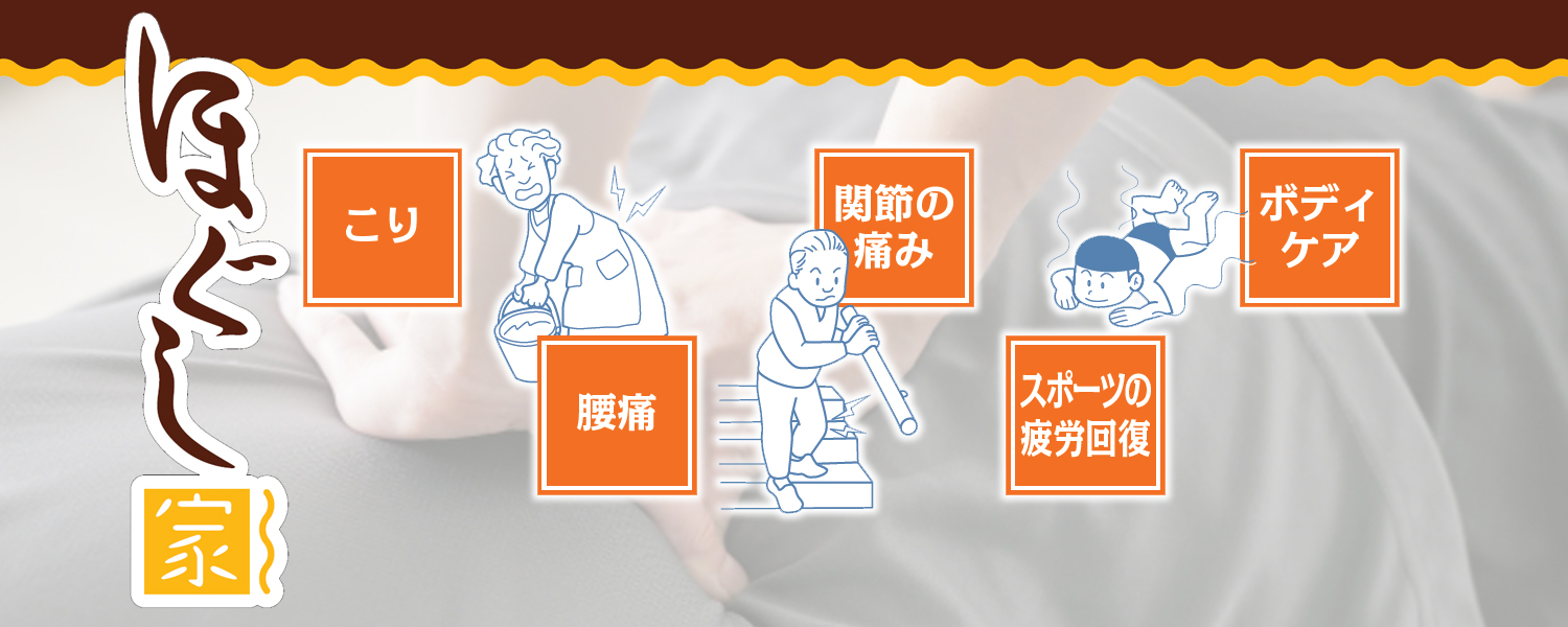 「ほぐし家」は、皆様の快適で幸せな生活を願いながら真心をこめて施術させていただきます。体のことなら何でも、まずはご相談ください。